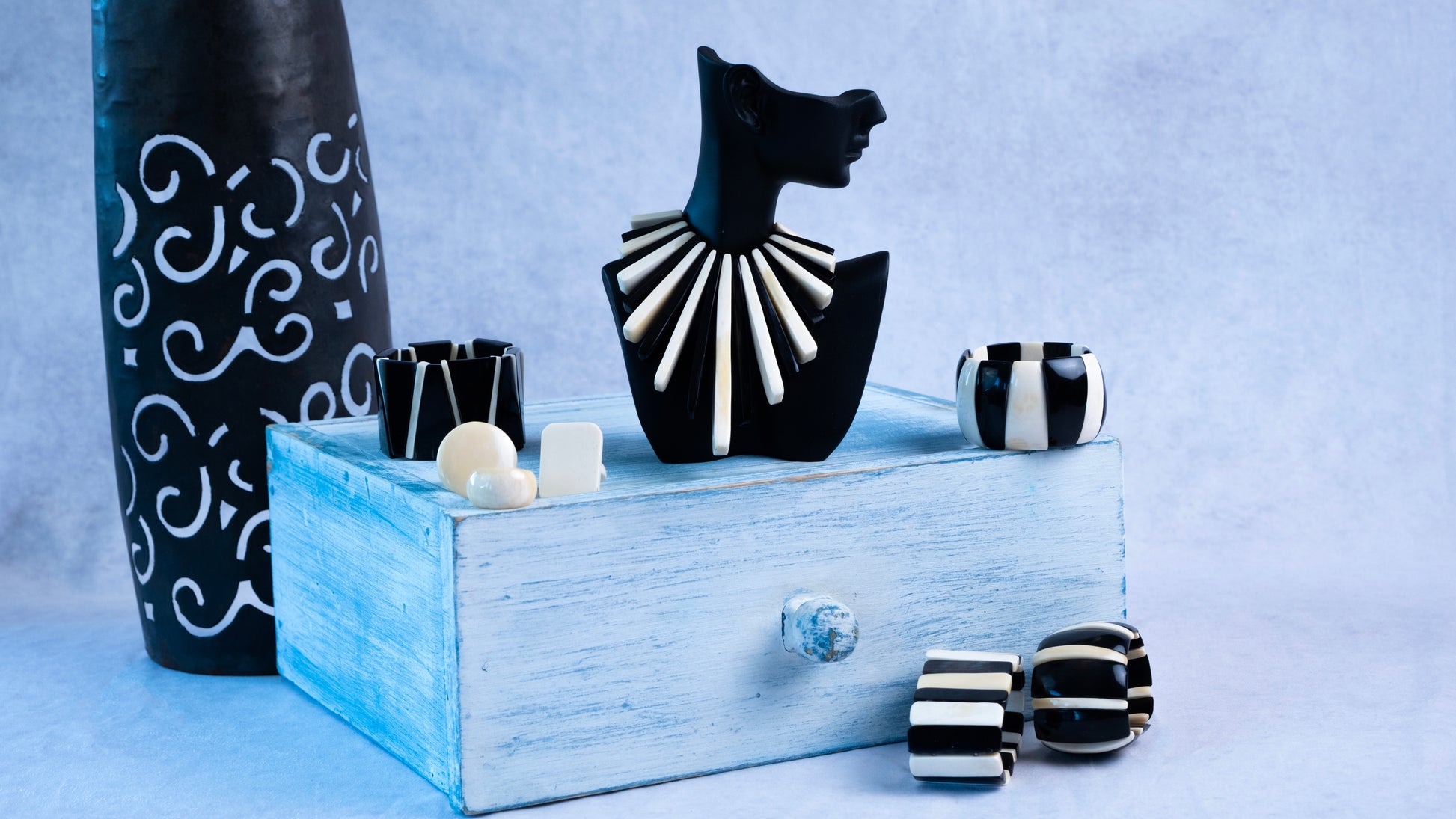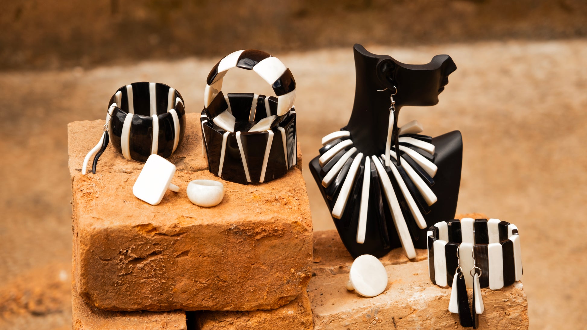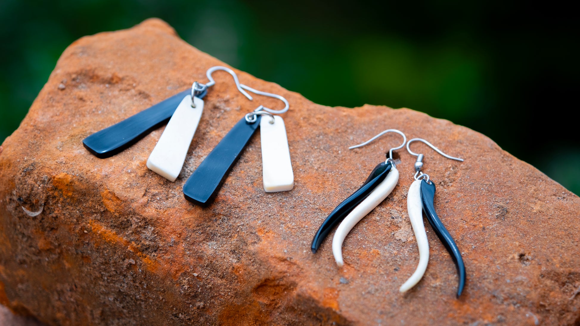 Boucles os double ROA est une paire de boucles d’oreilles en os, faite main à Madagascar. La matière naturelle apporte une élégance subtile et un esprit bohème facile à porter.