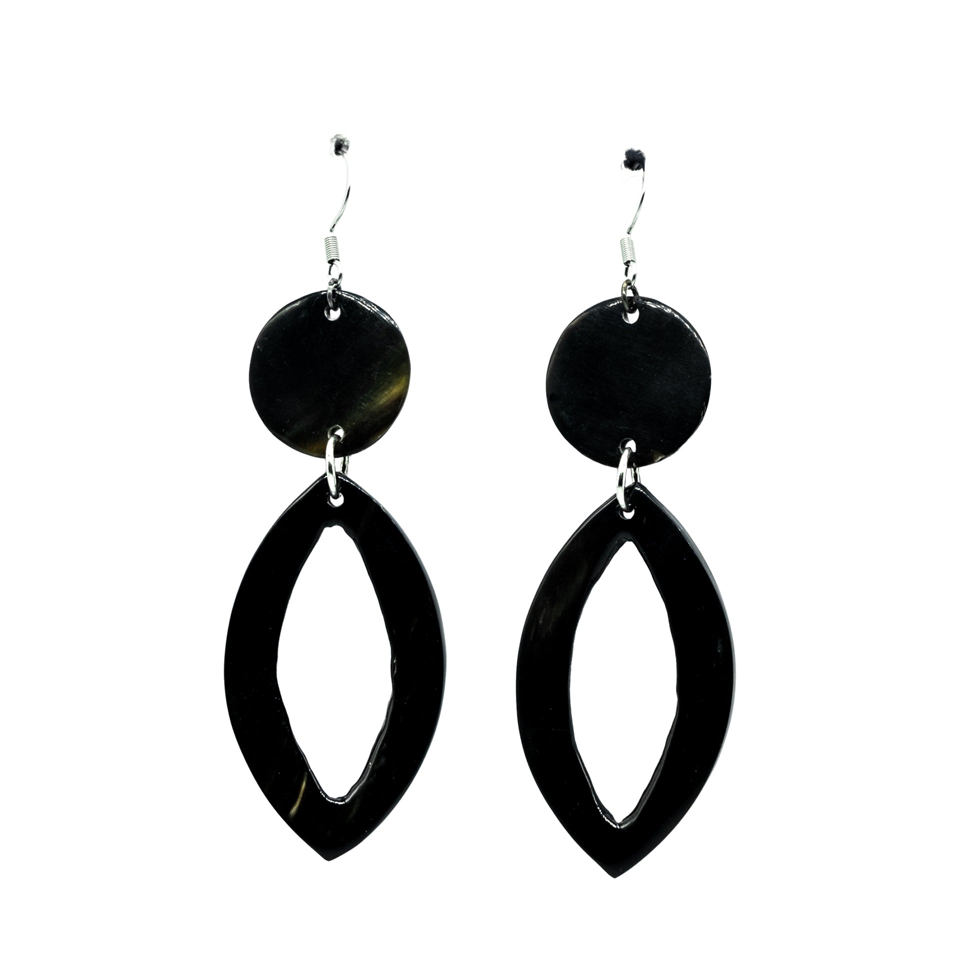 Boucles rond associé épingle à nourrice VINA est une paire de boucles d’oreilles en corne, faite main à Madagascar. La corne offre une texture naturelle et des reflets uniques, pour un bijou à la fois élégant et authentique.