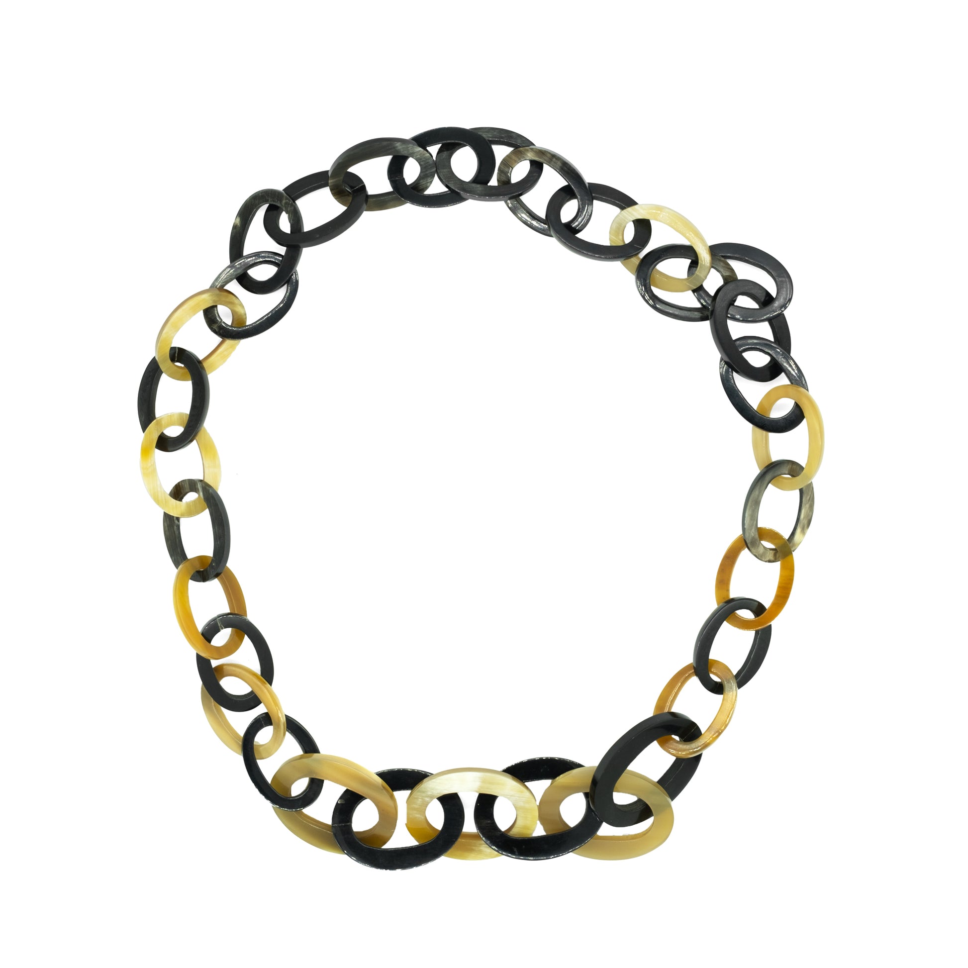 Collier en corne naturelle façonné à la main à Madagascar. Chaque modèle porte un prénom et chaque pièce est unique, avec de légères variations de couleur. Léger, confortable et facile à porter au quotidien.